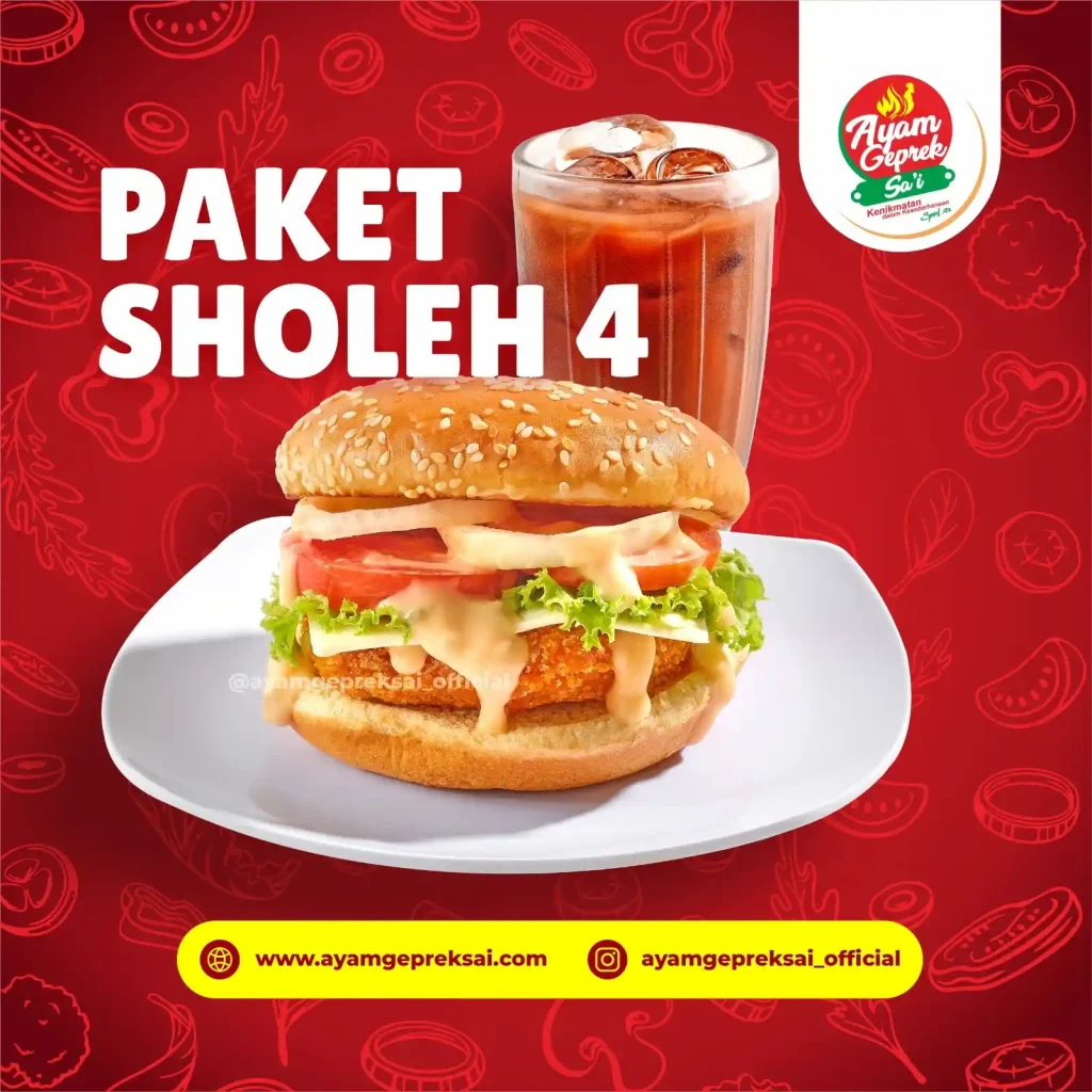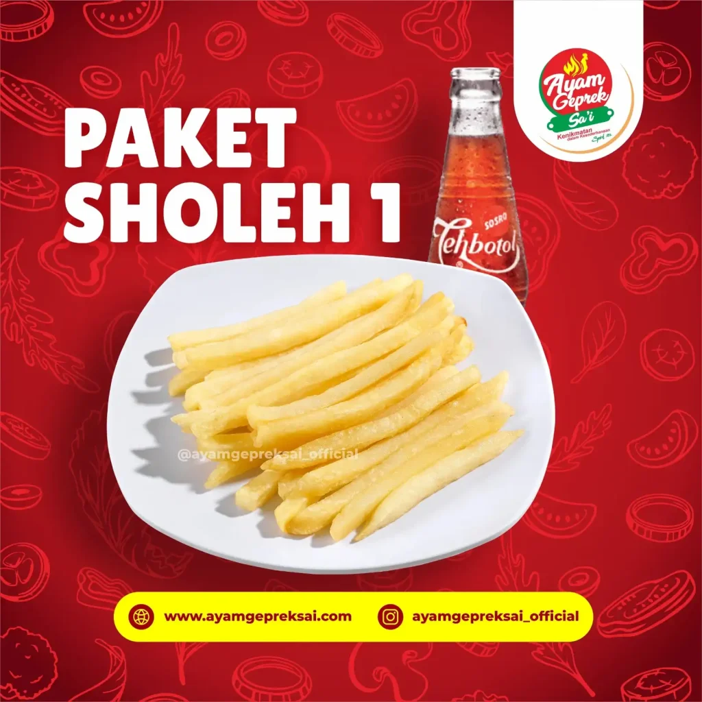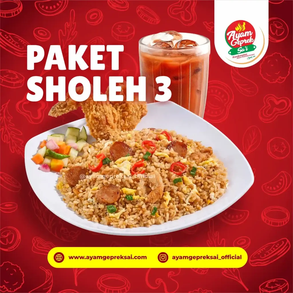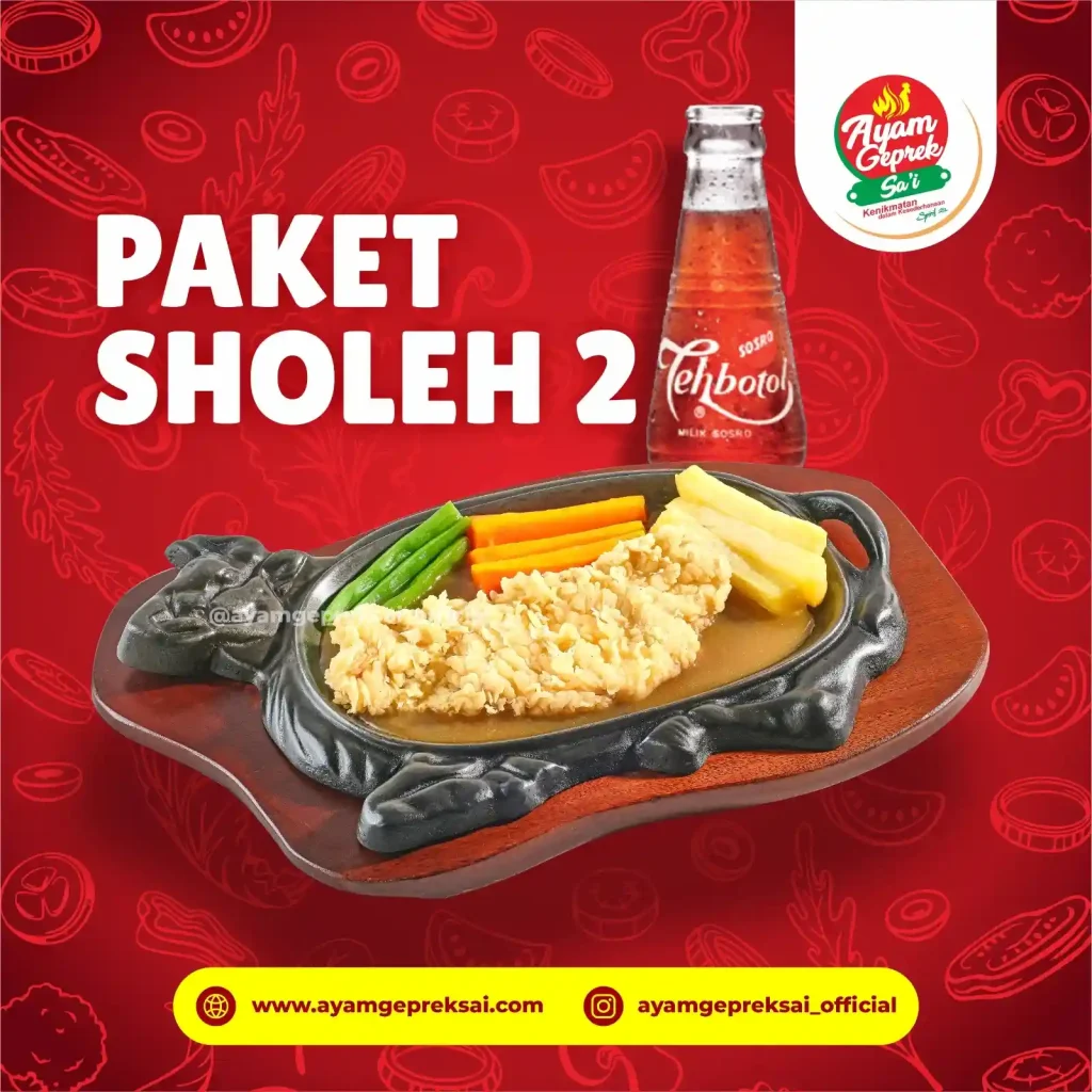 Paket Fried Chicken Fried Chicken 1Nasi + Sayap + Teh Manis Fried Chicken 2Nasi + Paha Bawah+ Teh Manis Fried Chicken 3Nasi + Dada / Paha Atas+ Teh Manis Paket Geprek Paket Geprek 1Geprek Sayap + Nasi + Teh Manis Paket Geprek 2Geprek Paha Bawah+ Nasi + Teh Manis Paket Geprek 3Geprek Dada/Paha Atas + Nasi + Teh Manis Paket Geprek 4Geprek Tanpa Tulang + Nasi + Teh Manis Paket Sholeh Paket Sholeh 1French Fries + Teh Botol Sosro Paket Sholeh 2Chicken Steak+ Teh Botol Sosro Paket Sholeh 3Nasgor + Sayap Fried Chicken + Es Coklat Paket Sholeh 4Chicken Burger + Es Coklat Paket Matah Paket Matah 1Sayap Sambal Matah + Nasi + Teh Manis Paket Matah 2Paha Bawah Sambal Matah + Nasi + Teh Manis Paket Matah 3Dada Sambal Matah + Nasi + Teh Manis Aneka Saus Kurma Ayam Cryspi Saus Kurma Ayam Original Saus Kurma Aneka Bersaus Saus Rempah Pedas Saus Madu Saus Lada Hitam Ayam Geprek AYAM GEPREK SAYAP AYAM GEPREK PAHA BAWAH AYAM GEPREK DADA / PAHA ATAS AYAM GEPREK TANPA TULANG Fried Chicken SAYAP PAHA BAWAH DADA / PAHA ATAS Fast Food Chicken Burger Cheese Burger Chicken Steak Chicken Teriyaki Cemilan Jamur Crispy Telur Goreng French Fries Tahu Crispy Onion Ring Aneka Cah Cah Kangkung Cah Kacang Cah Tauge Menu Lainnya,... Nasi Putih Nasi Goreng Nasgor Telur Perkedel Kwetiau Goreng Mie Goreng ICE CREAM TEH MANIS (Panas/Es) JERUK (Panas/Es) LEMON TEAN (Panas/Es) TEH BOTOL/TEBS/FRUITEA AIR MINERAL BOTOL CAPPUCINNO (Panas/Es) CAPPUCINNO FLOAT ANEKA MILKSHAKE ANEKA MILKSHAKE FLOAT KOPI HITAM
