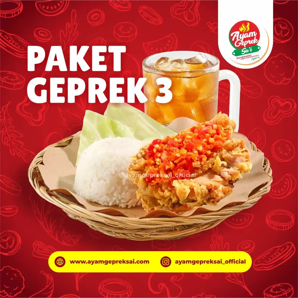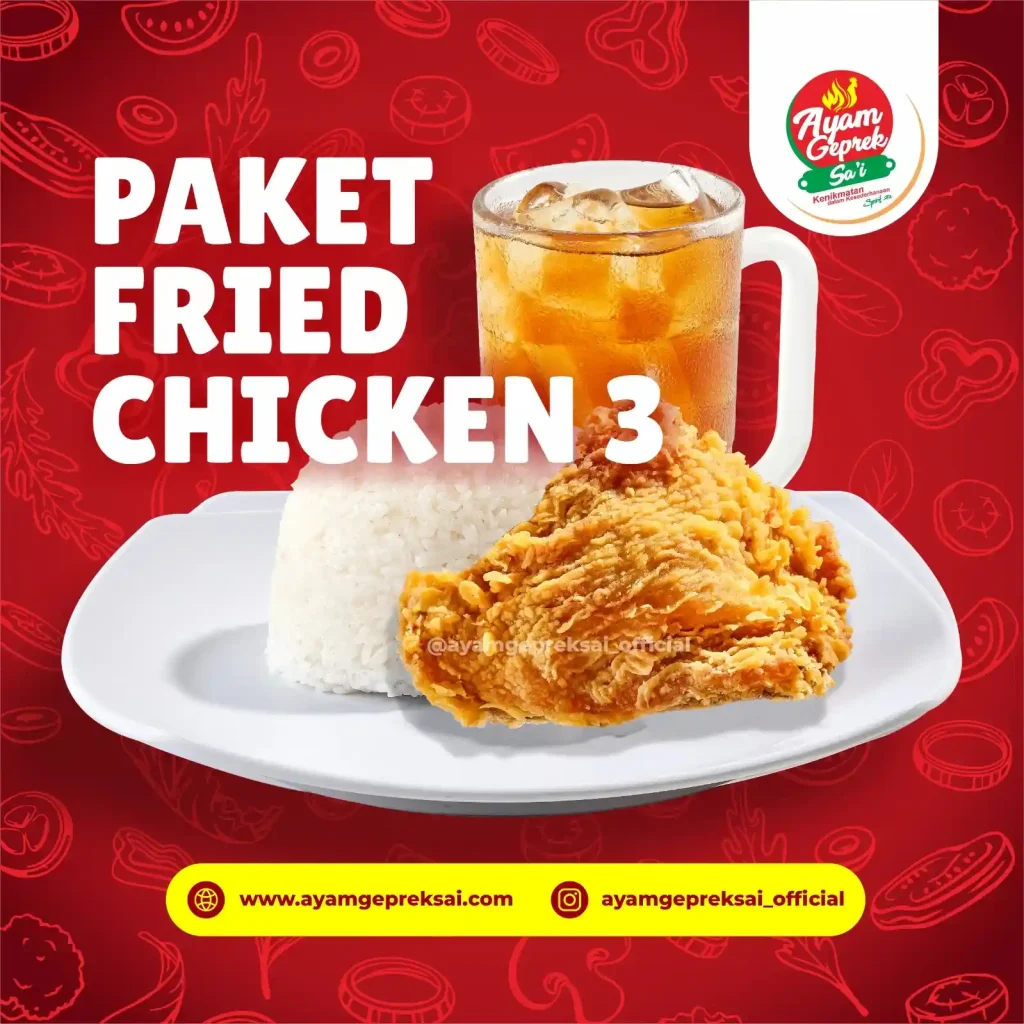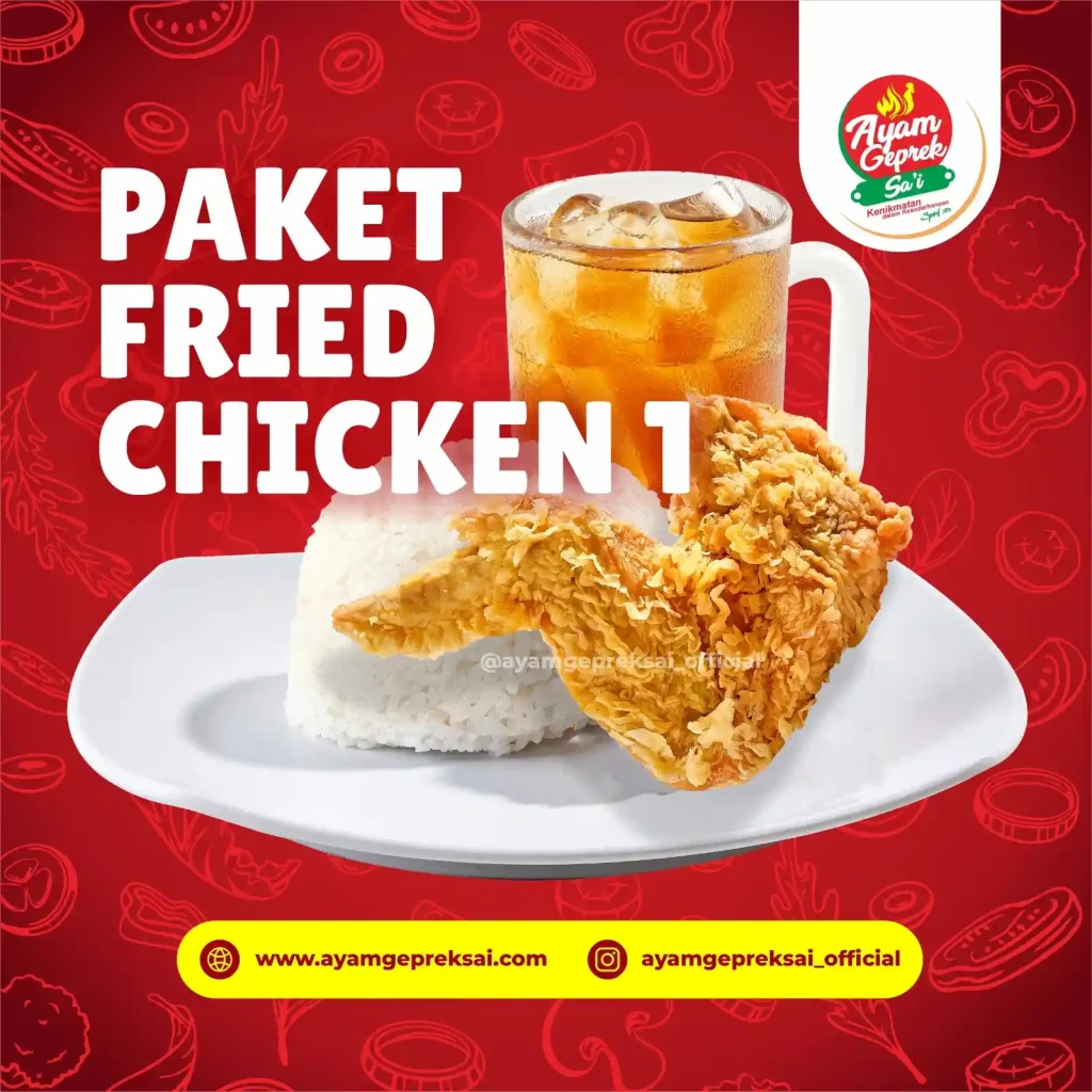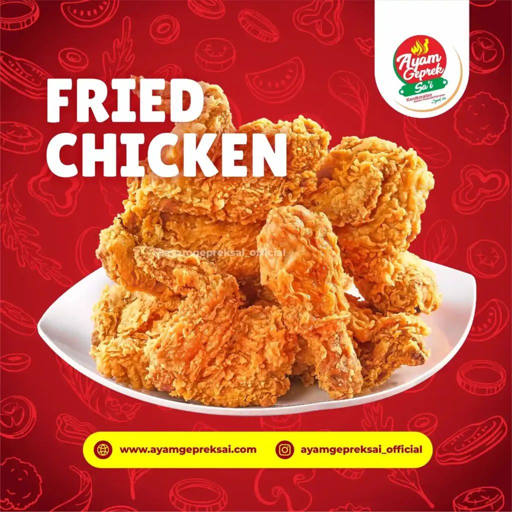 Paket Fried Chicken Fried Chicken 1Nasi + Sayap + Teh Manis Fried Chicken 2Nasi + Paha Bawah+ Teh Manis Fried Chicken 3Nasi + Dada / Paha Atas+ Teh Manis Paket Geprek Paket Geprek 1Geprek Sayap + Nasi + Teh Manis Paket Geprek 2Geprek Paha Bawah+ Nasi + Teh Manis Paket Geprek 3Geprek Dada/Paha Atas + Nasi + Teh Manis Paket Geprek 4Geprek Tanpa Tulang + Nasi + Teh Manis Paket Sholeh Paket Sholeh 1French Fries + Teh Botol Sosro Paket Sholeh 2Chicken Steak+ Teh Botol Sosro Paket Sholeh 3Nasgor + Sayap Fried Chicken + Es Coklat Paket Sholeh 4Chicken Burger + Es Coklat Paket Matah Paket Matah 1Sayap Sambal Matah + Nasi + Teh Manis Paket Matah 2Paha Bawah Sambal Matah + Nasi + Teh Manis Paket Matah 3Dada Sambal Matah + Nasi + Teh Manis Aneka Saus Kurma Ayam Cryspi Saus Kurma Ayam Original Saus Kurma Aneka Bersaus Saus Rempah Pedas Saus Madu Saus Lada Hitam Ayam Geprek AYAM GEPREK SAYAP AYAM GEPREK PAHA BAWAH AYAM GEPREK DADA / PAHA ATAS AYAM GEPREK TANPA TULANG Fried Chicken SAYAP PAHA BAWAH DADA / PAHA ATAS Fast Food Chicken Burger Cheese Burger Chicken Steak Chicken Teriyaki Cemilan Jamur Crispy Telur Goreng French Fries Tahu Crispy Onion Ring Aneka Cah Cah Kangkung Cah Kacang Cah Tauge Menu Lainnya,... Nasi Putih Nasi Goreng Nasgor Telur Perkedel Kwetiau Goreng Mie Goreng ICE CREAM TEH MANIS (Panas/Es) JERUK (Panas/Es) LEMON TEAN (Panas/Es) TEH BOTOL/TEBS/FRUITEA AIR MINERAL BOTOL CAPPUCINNO (Panas/Es) CAPPUCINNO FLOAT ANEKA MILKSHAKE ANEKA MILKSHAKE FLOAT KOPI HITAM